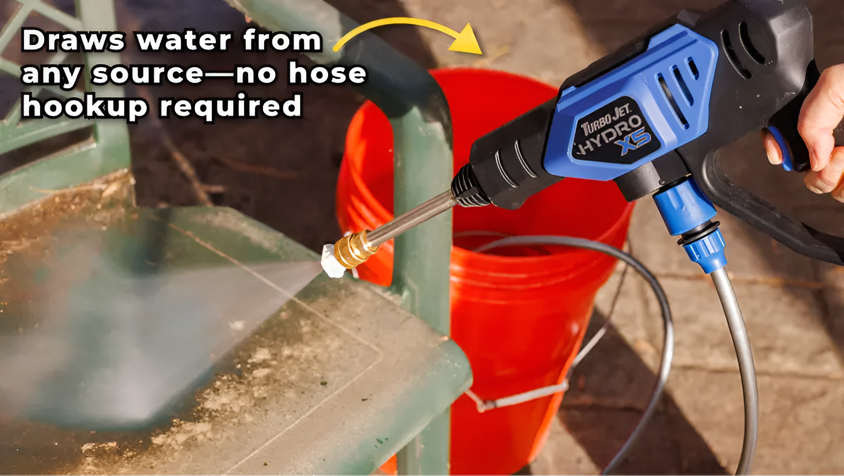 If you want a pressure washer you can actually take anywhere, the Turbo Hydro X5 is the only one on this list worth buying. The other two need a power outlet, a hose connection, and 10 minutes of setup before you can clean a single thing. The X5 needs none of that. Fill a bucket, press a button, and you are cleaning in 30 seconds. At $99 with free shipping, it is also the cheapest option once you factor in the shipping costs on the other two. Stock has been selling out at this price. If it is available when you check, do not wait.